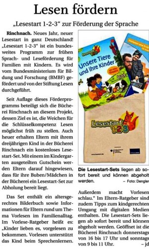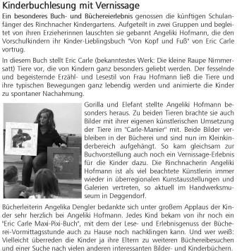 Viele kleine Leser aus dem Rinchnacher Kindergarten besuchen zusammen mit ihren Erzieherinnen regel-mäßig die Bücherei. Sie wühlen in Kisten voller in-teressanter Bilderbücher und informativer Kindersachbü-cher. Die Erzieherin hilft man-chmal bei der Entscheidung oder liest auch schnell mal was vor.